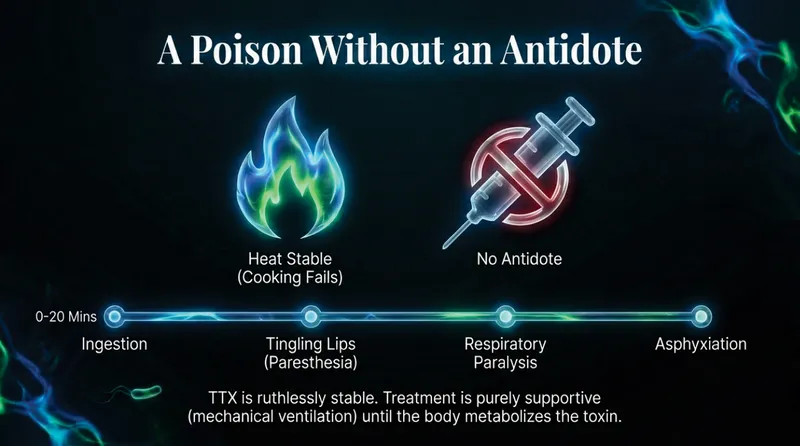 There is currently no known specific antidote for Tetrodotoxin in humans. Survival relies entirely on immediate medical intervention:
