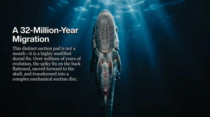 Over nearly 32 million years of evolution, the spiky fin on their back flattened out, moved forward to the top of their skull, and completely transformed into a complex mechanical suction disc.