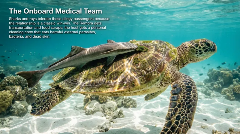 Why do sharks, turtles, and manta rays put up with these clingy passengers? It’s a classic win-win relationship. The remora gets free transportation, protection from other predators, and leftover food scraps from the host's meals.
