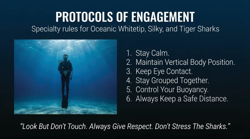 Diving with apex predators is a privilege. To ensure both your safety and the well-being of the sharks, strictly follow these "Rules of the Water":