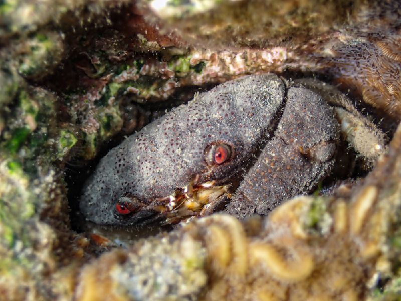 The Indo-Pacific Furry Lobster, scientifically known as Palinurellus wieneckii, is a tropical species that inhabits the ocean floor at depths ranging from 1 to 27 meters (approximately 3 to 89 feet). This lobster can reach a total body length of up to 20 centimeters (about 7.9 inches), with its carapace measuring a maximum of 8 centimeters (around 3.1 inches). Typically, individuals are observed with body lengths between 10 to 14 centimeters (approximately 3.9 to 5.5 inches).